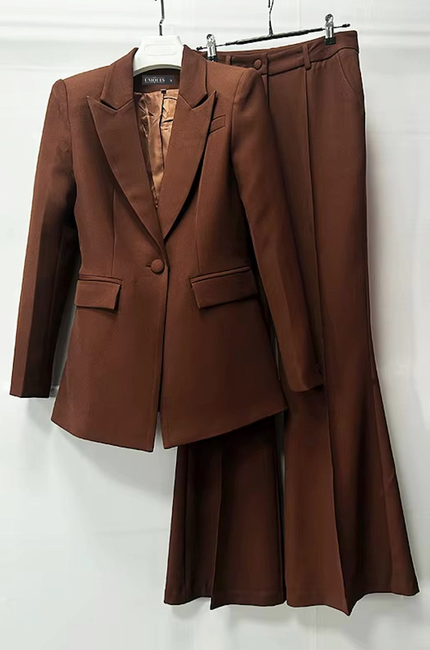 Effortlessly refined, the Claudia Tailored Chocolate Brown Pantsuit brings modern polish to your wardrobe. Designed with a fitted single-button blazer and long, sculpting trousers, this rich espresso-toned set creates a sleek, elongated silhouette perfect for work, events, and elevated everyday style. Its clean lines and timeless tailoring make it a versatile, luxury-inspired staple you’ll wear season after season.