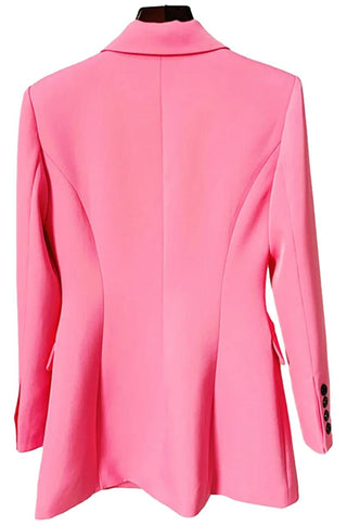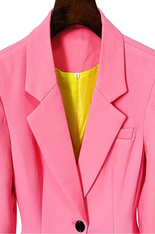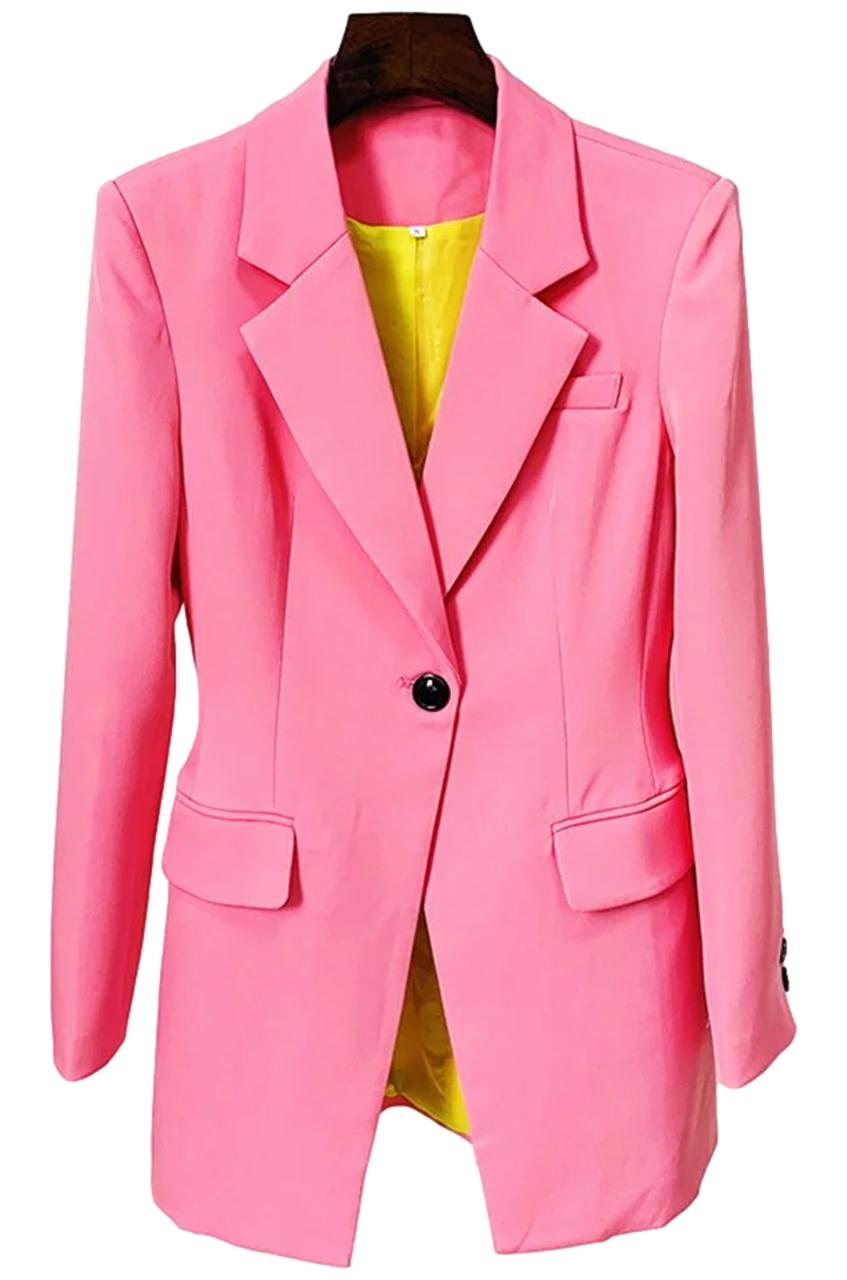 Tina Pink Single Button Long Blazer features a classic style of blazer with a single button closure and flap pockets.