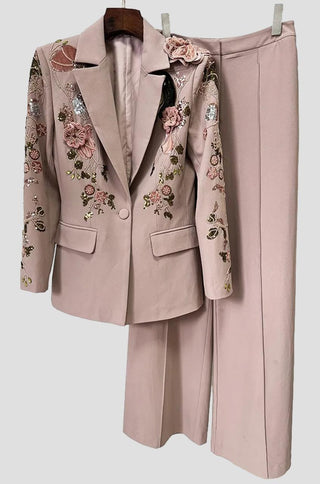 Nelya Embellished Floral Embroidered Blazer Pants Set