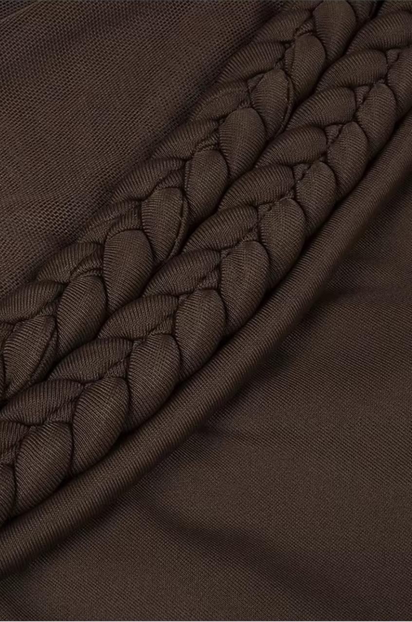 Turn heads with timeless elegance in this chocolate brown maxi dress. Designed with a sculpting silhouette and luxurious braided trim, this dress is made for evenings where sophistication meets allure.