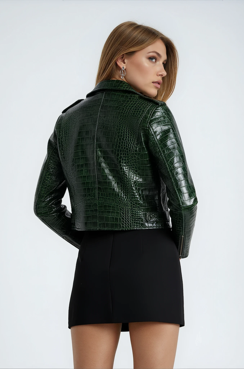Doris Croc Real Leather Biker Jacket
